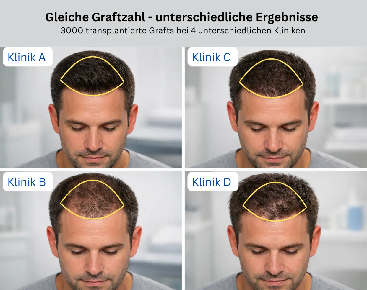 Während es in Deutschland viele hochqualifizierte Haarchirurgen gibt, existieren auch allgemeine Schönheitskliniken, in denen Haartransplantationen nur als zusätzliche Leistung angeboten werden. Dadurch kann es sein, dass nicht alle Ärzte eine langjährige Spezialisierung auf diesem Gebiet haben. Patienten sollten daher besonders darauf achten, eine Klinik mit umfangreicher Erfahrung und Spezialisierung auf Haartransplantationen auszuwählen.